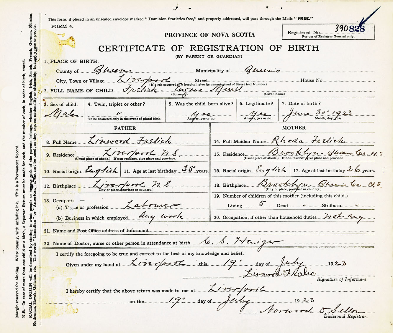 Male Birth Registration: Year: 1923 number: 39000828