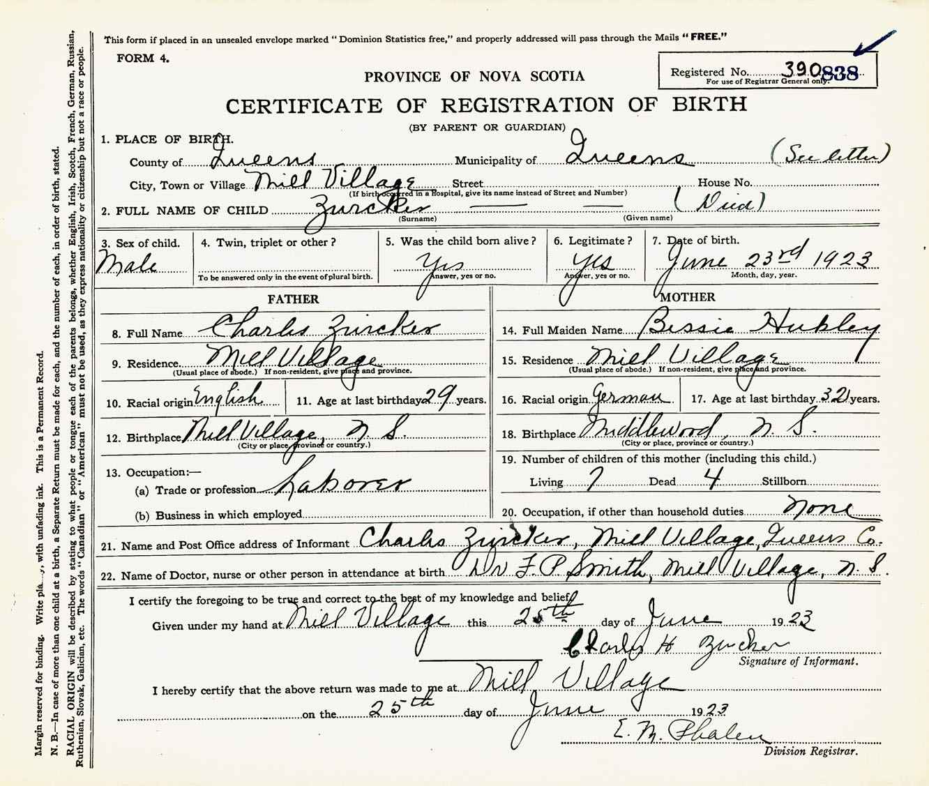 Male Birth Registration: Year: 1923 number: 39000838