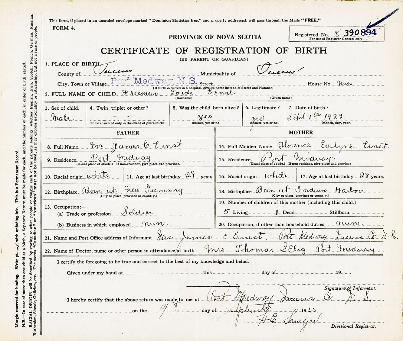 Male Birth Registration: Year: 1923 number: 39000894