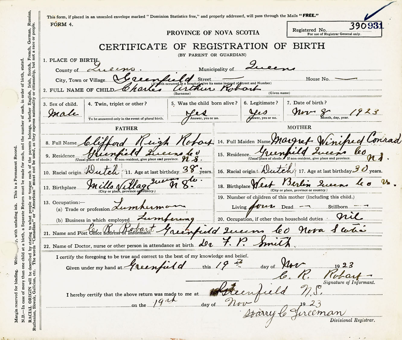 Male Birth Registration: Year: 1923 number: 39000931