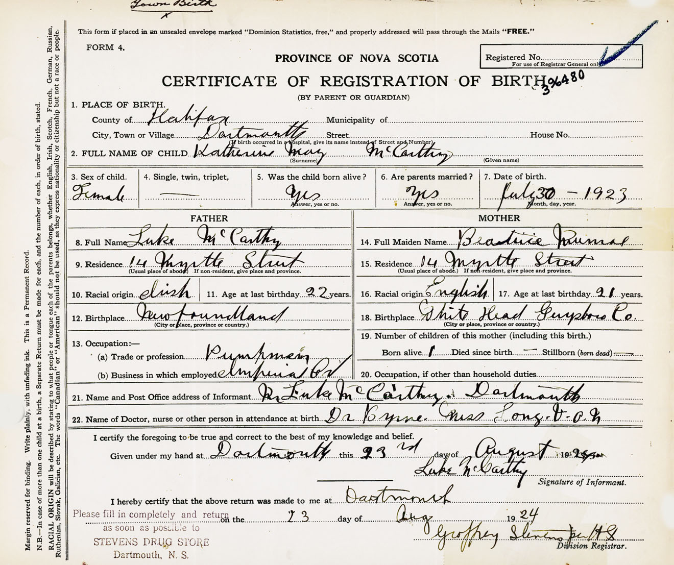 Nova Scotia Archives — https://archives.novascotia.ca/vital-statistics/birth/?ID=433702