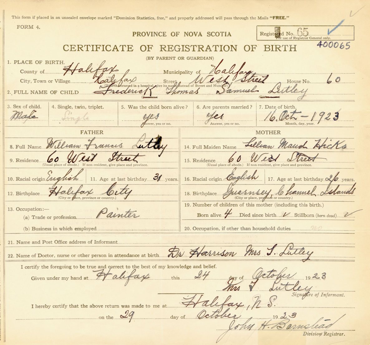 Male Birth Registration: Year: 1923 number: 40000065
