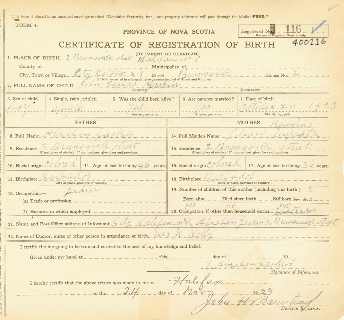 Male Birth Registration: Year: 1923 number: 40000116