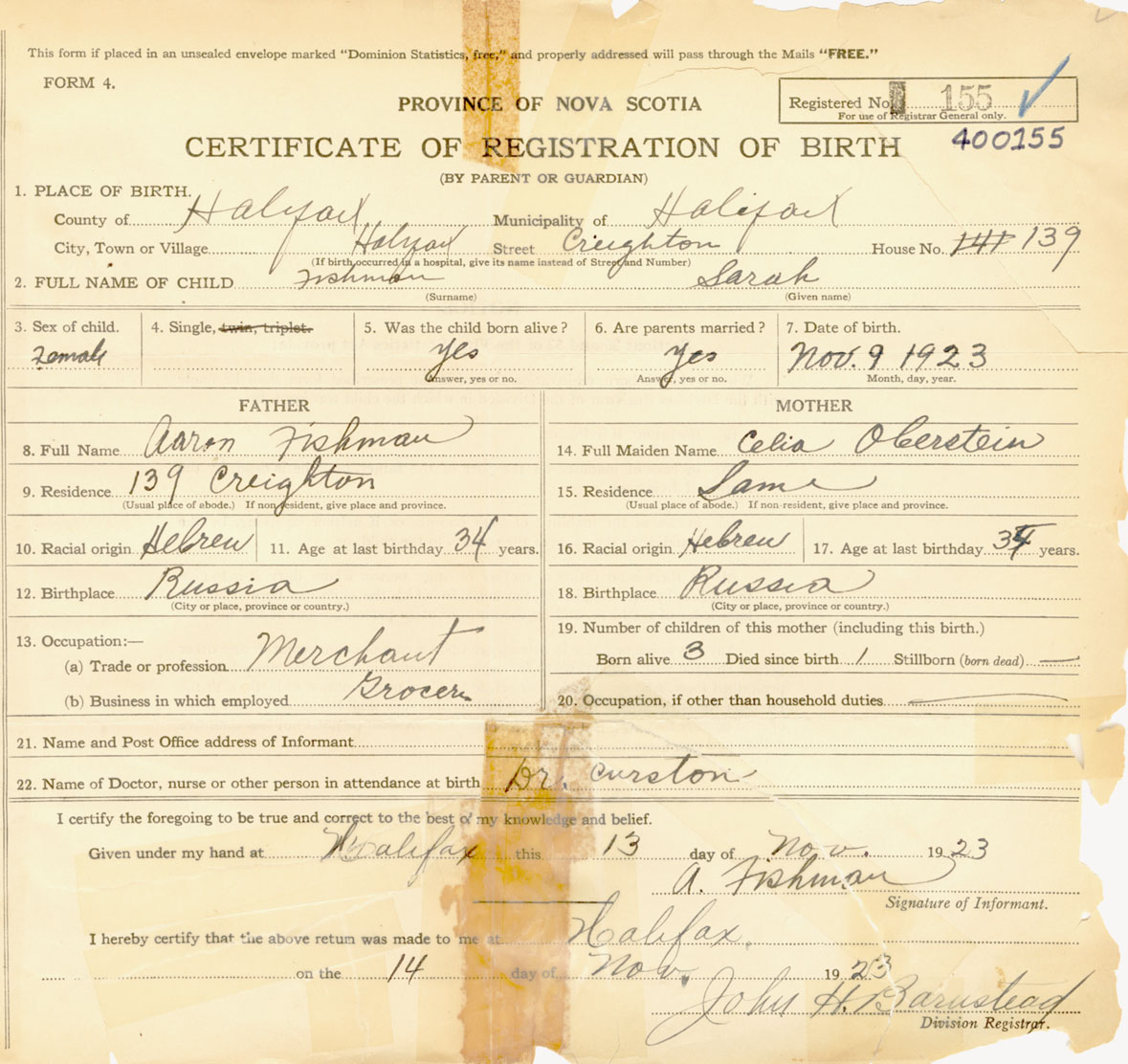 Nova Scotia Archives — https://archives.novascotia.ca/vital-statistics/birth/?ID=433857