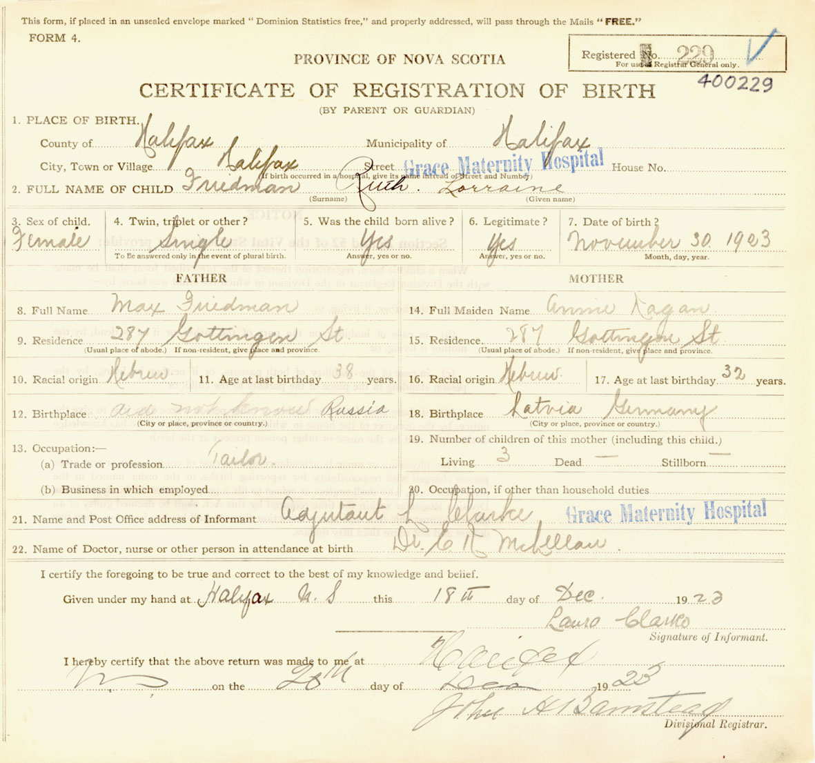 Female Birth Registration: Year: 1923 number: 40000229