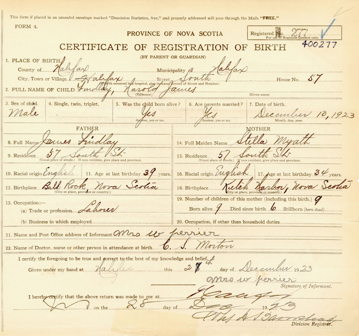 Male Birth Registration: Year: 1923 number: 40000277