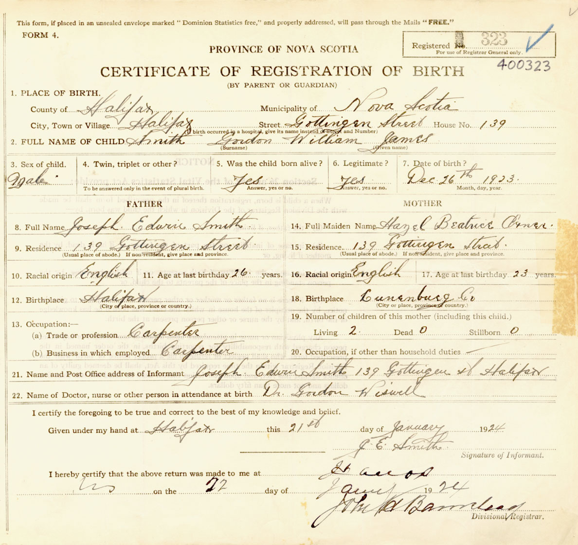 Male Birth Registration: Year: 1923 number: 40000323
