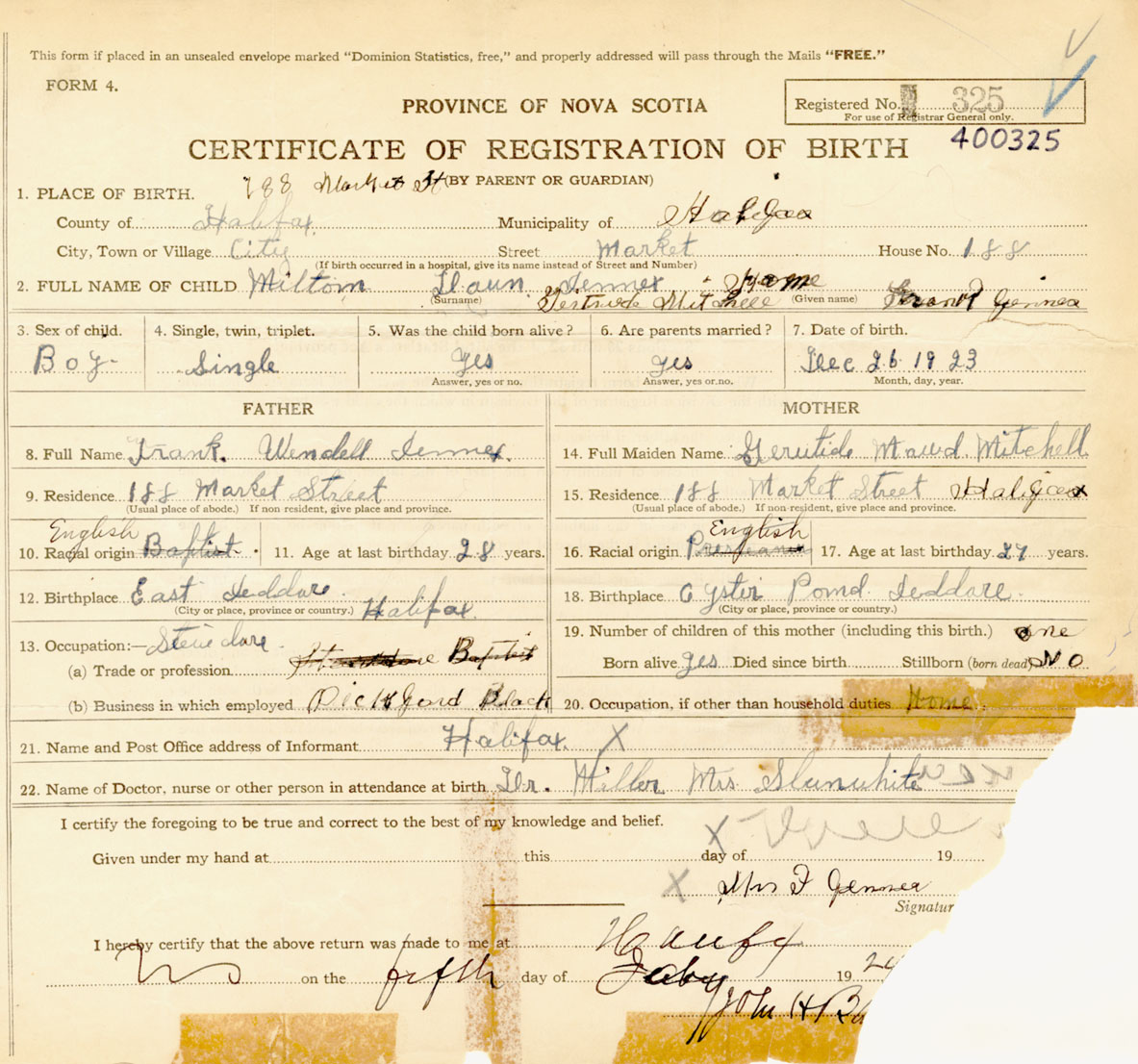 Male Birth Registration: Year: 1923 number: 40000325