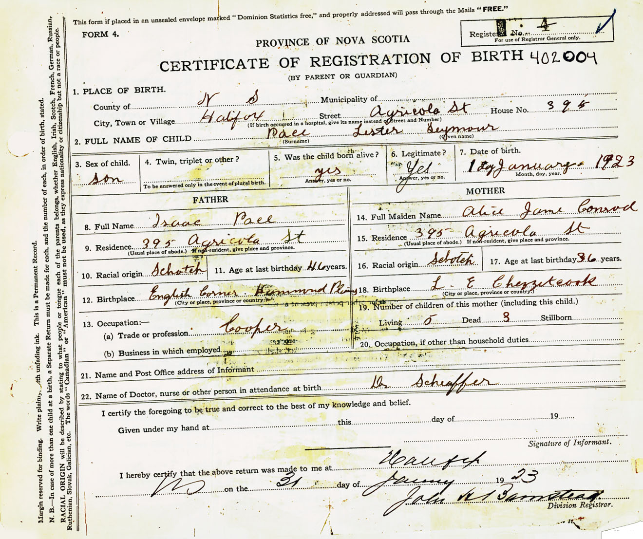 Male Birth Registration: Year: 1923 number: 40200004