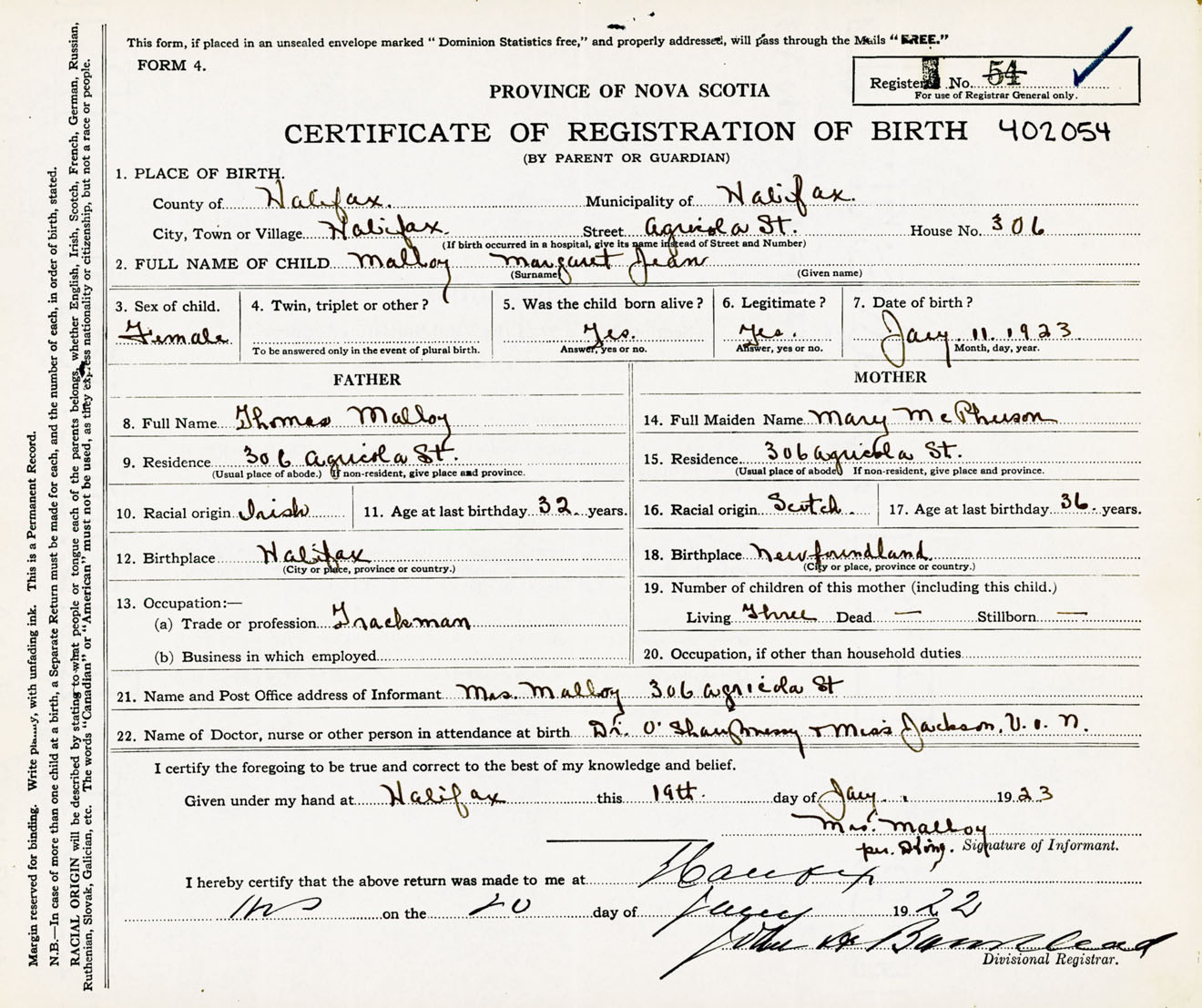 Nova Scotia Archives — https://archives.novascotia.ca/vital-statistics/birth/?ID=434100