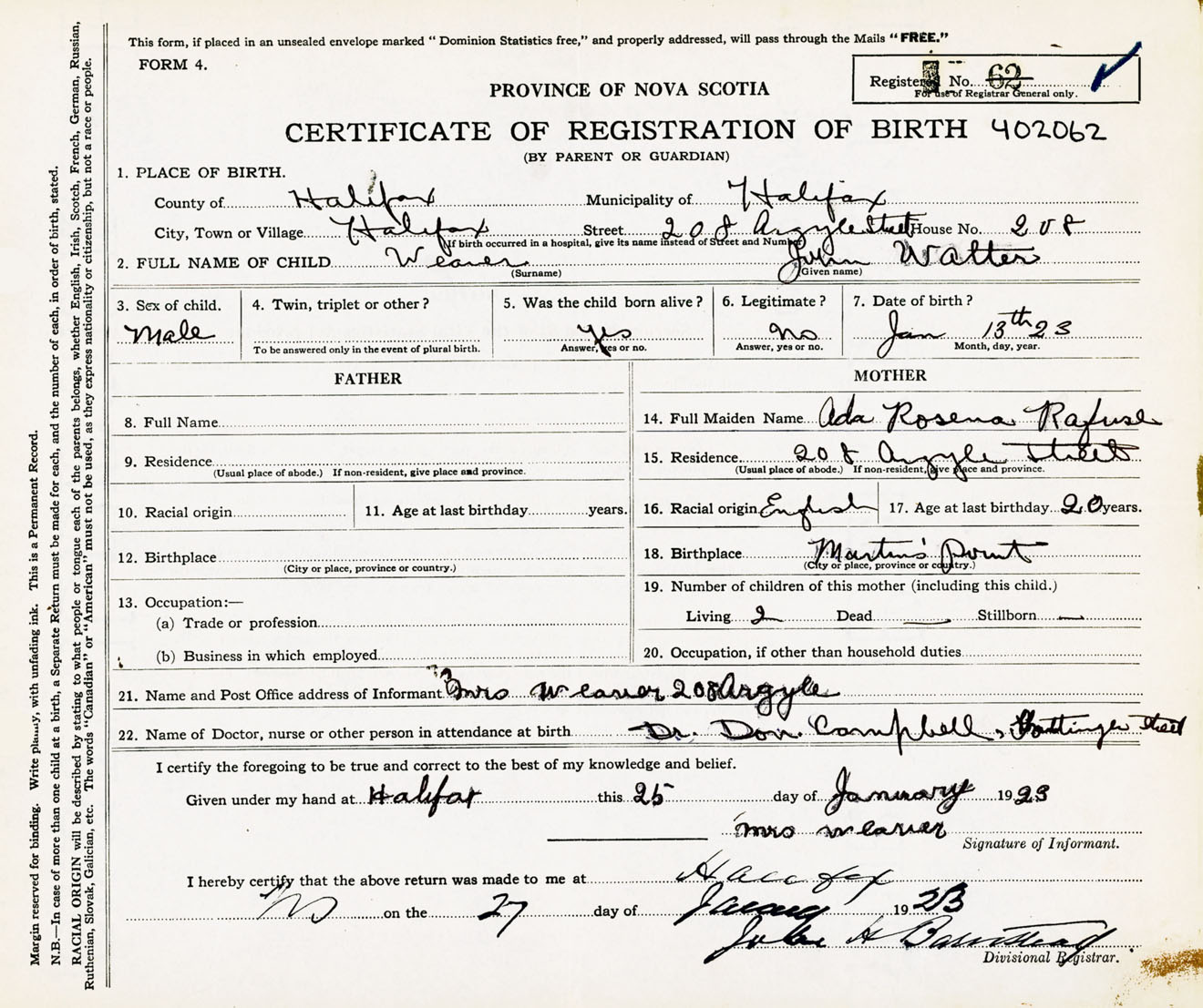 Male Birth Registration: Year: 1923 number: 40200062