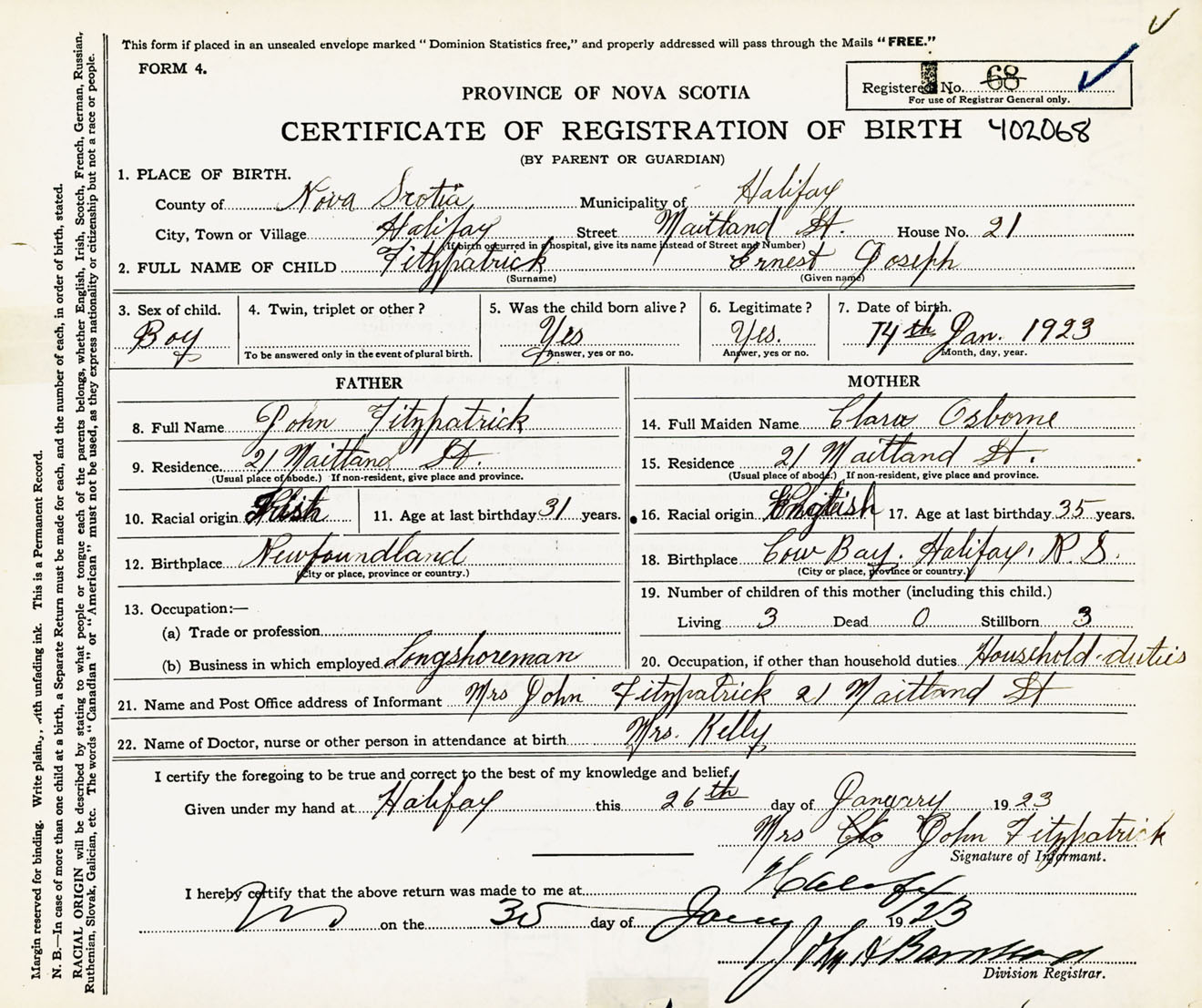 Male Birth Registration: Year: 1923 number: 40200068