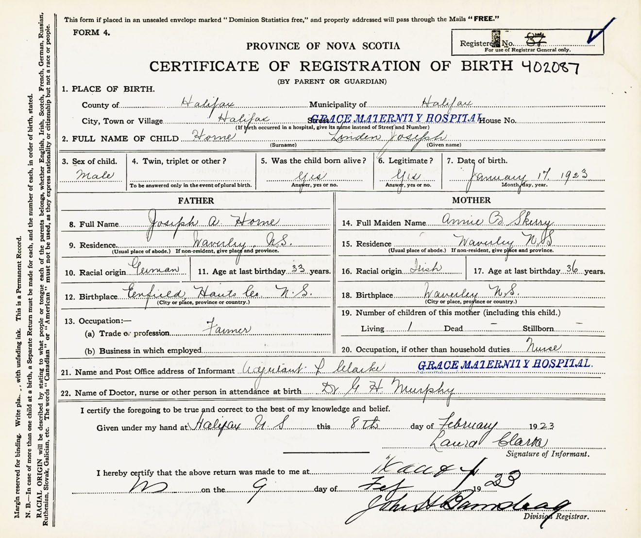 Nova Scotia Archives — https://archives.novascotia.ca/vital-statistics/birth/?ID=434133