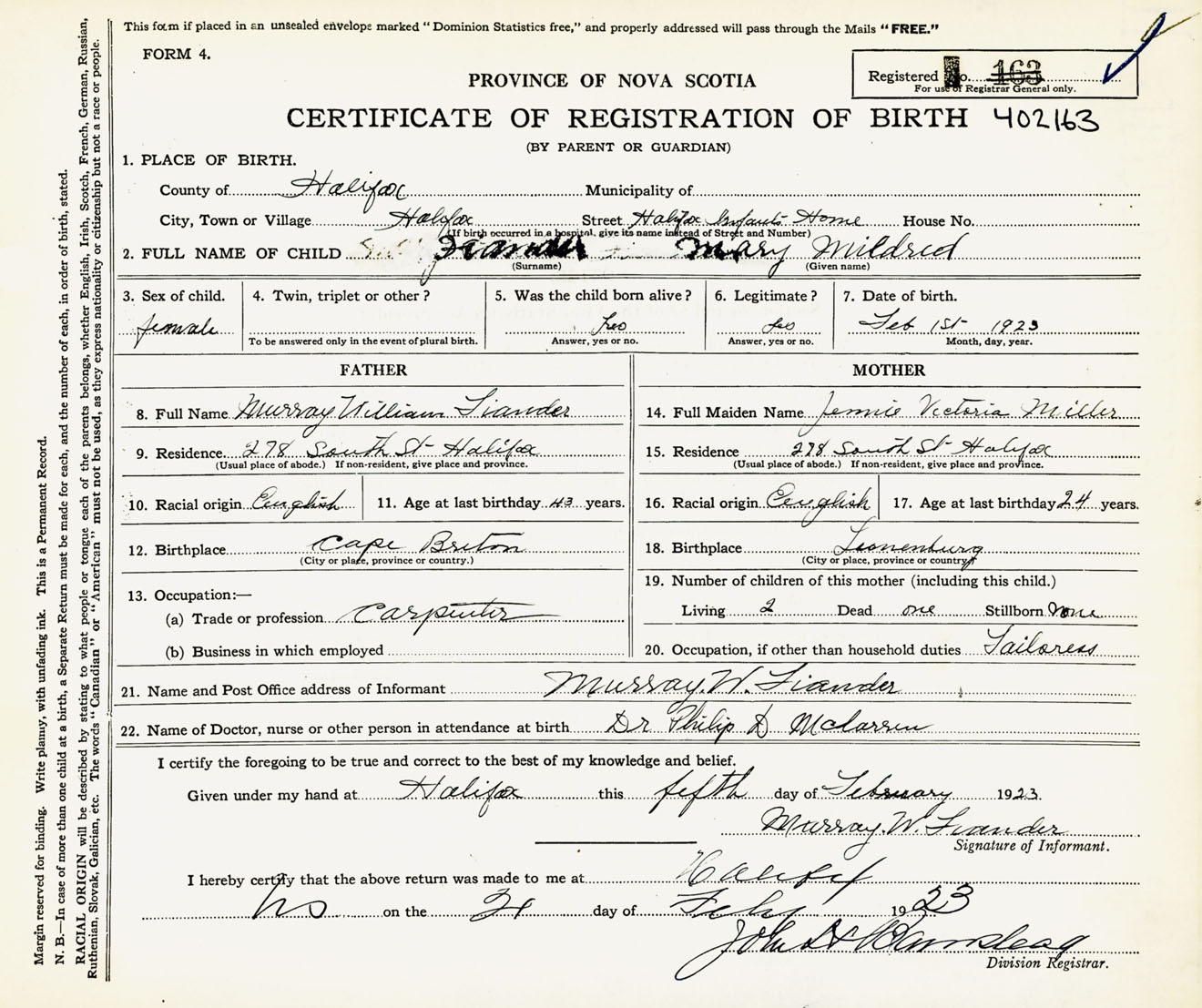 Nova Scotia Archives — https://archives.novascotia.ca/vital-statistics/birth/?ID=434207