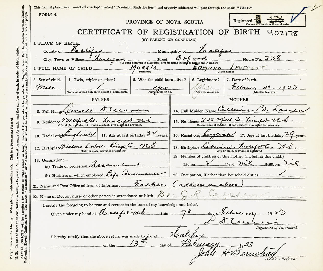 Male Birth Registration: Year: 1923 number: 40200178