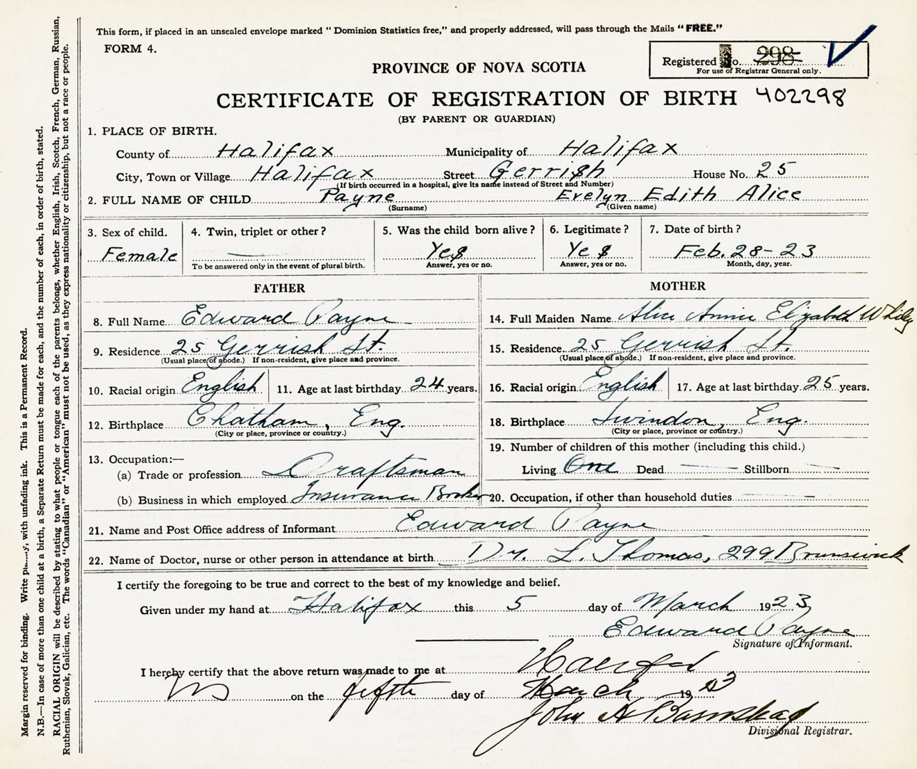 Female Birth Registration: Year: 1923 number: 40200298