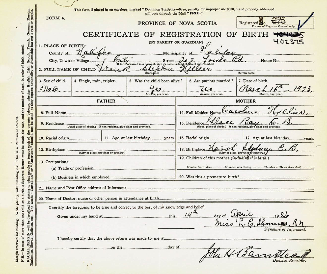 Nova Scotia Archives — https://archives.novascotia.ca/vital-statistics/birth/?ID=434419