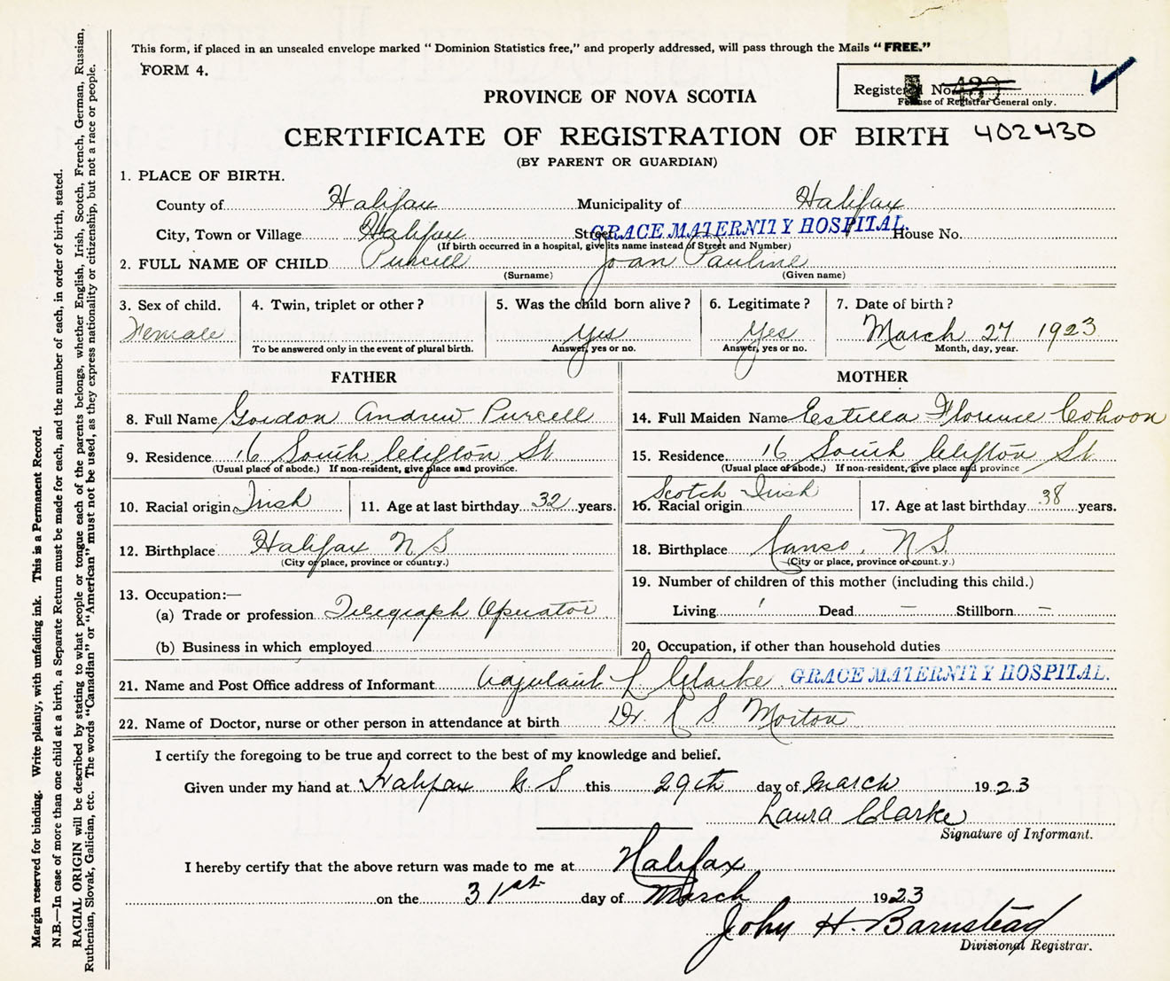 Nova Scotia Archives — https://archives.novascotia.ca/vital-statistics/birth/?ID=434474