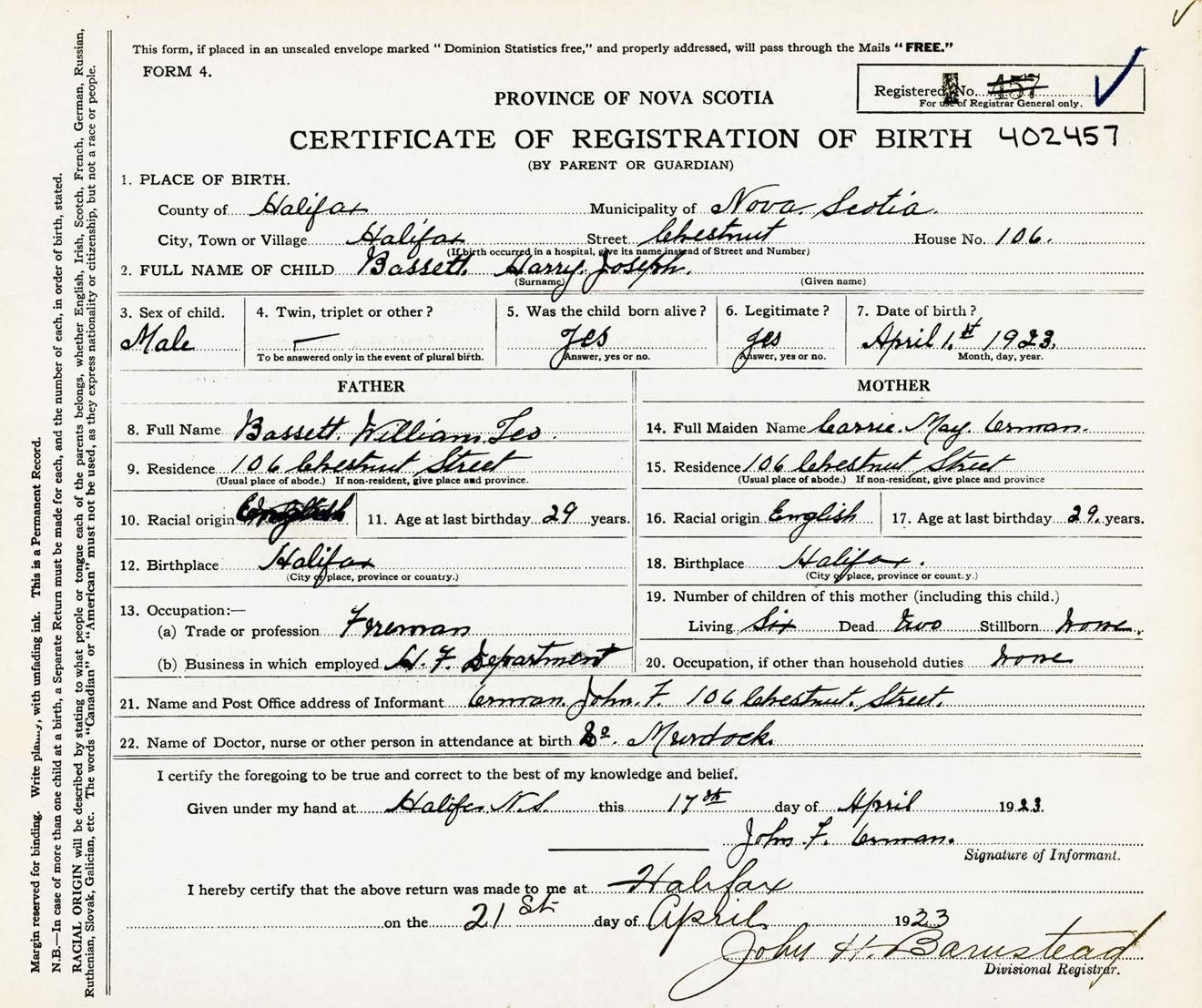 Nova Scotia Archives — https://archives.novascotia.ca/vital-statistics/birth/?ID=434501