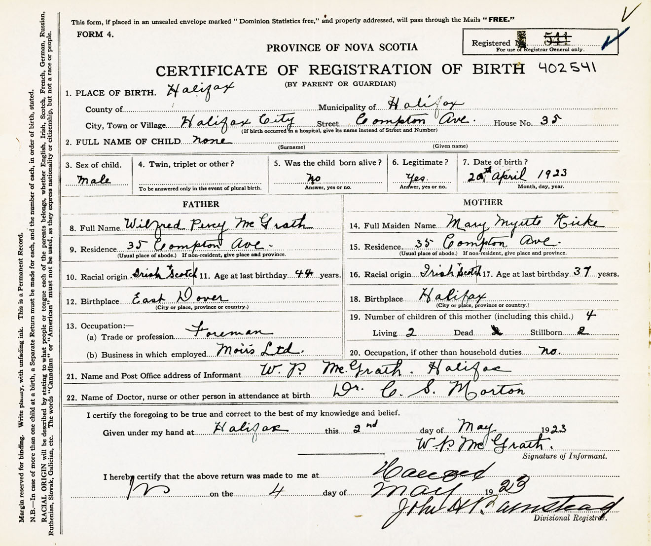 Nova Scotia Archives — https://archives.novascotia.ca/vital-statistics/birth/?ID=434583