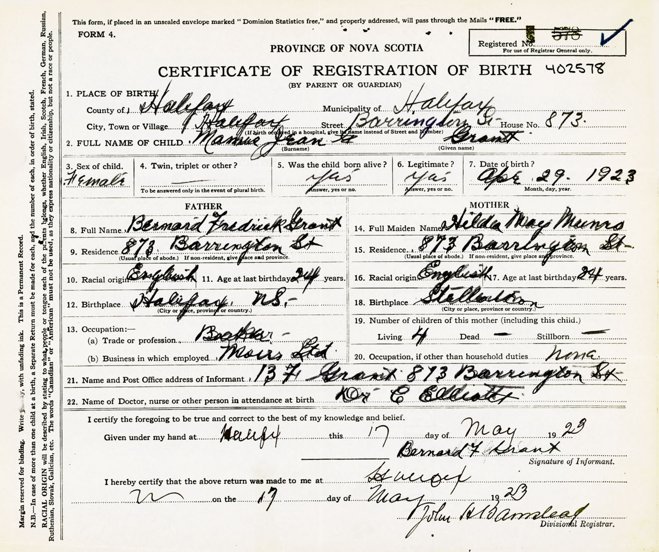 Nova Scotia Archives — https://archives.novascotia.ca/vital-statistics/birth/?ID=434620