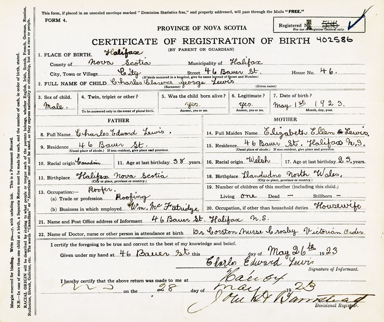 Male Birth Registration: Year: 1923 number: 40200586