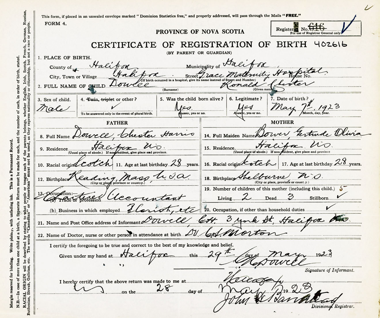 Male Birth Registration: Year: 1923 number: 40200616