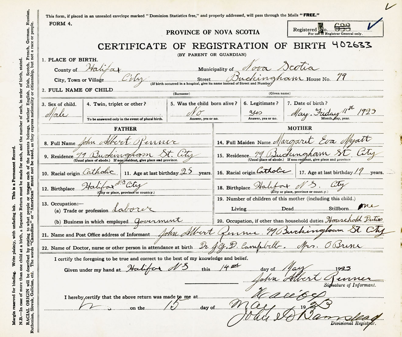 Male Birth Registration: Year: 1923 number: 40200633
