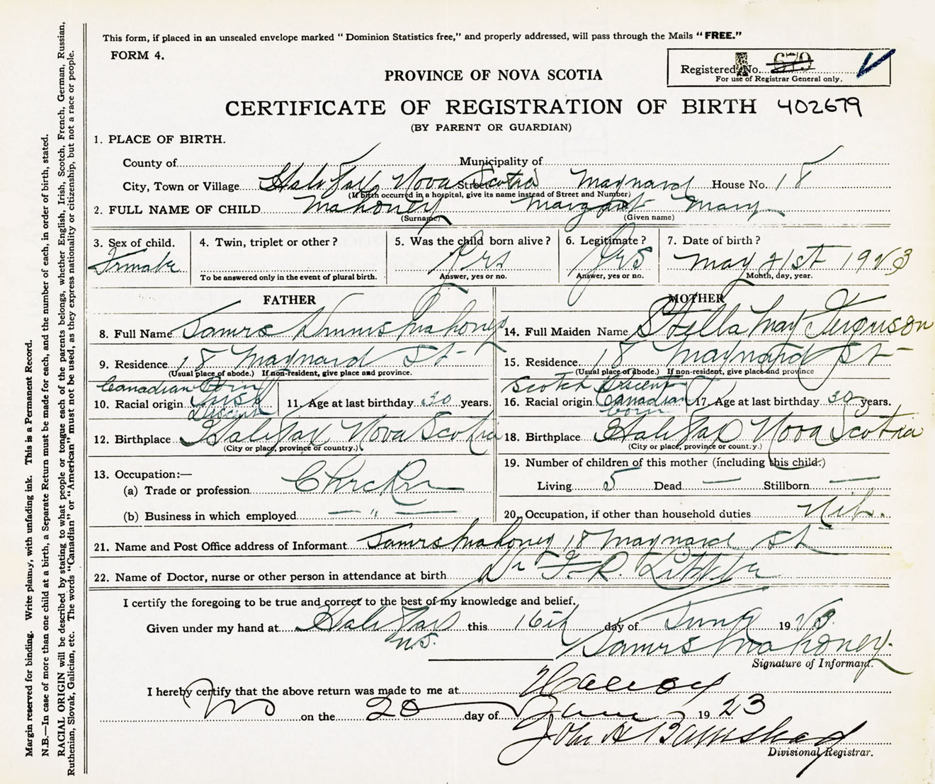 Nova Scotia Archives — https://archives.novascotia.ca/vital-statistics/birth/?ID=434721