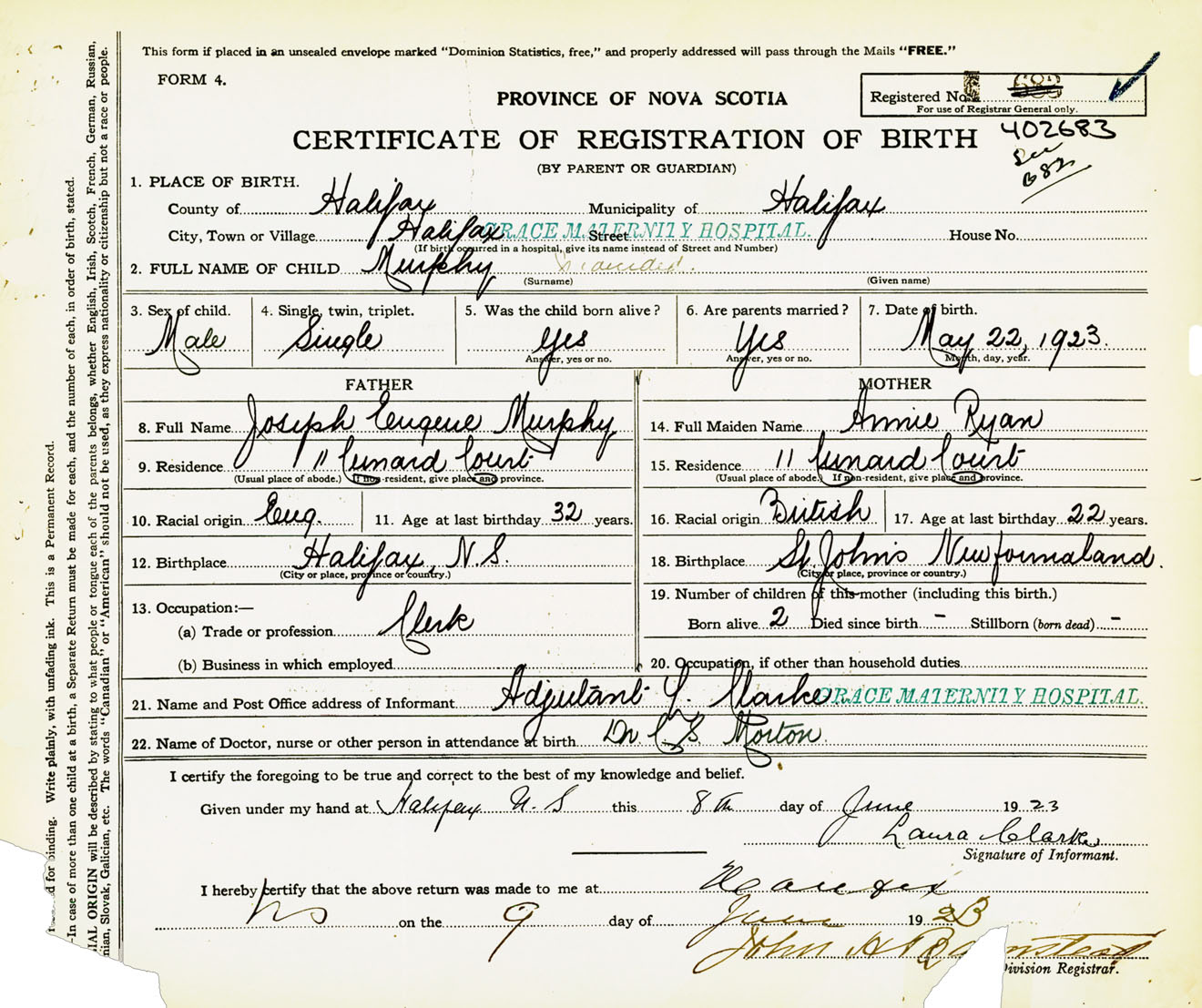 Birth Registration: Year: 1923 number: 40200683