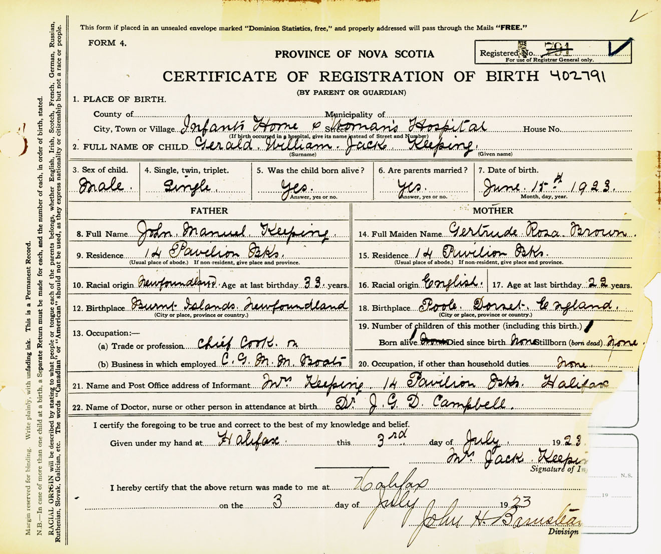 Male Birth Registration: Year: 1923 number: 40200791