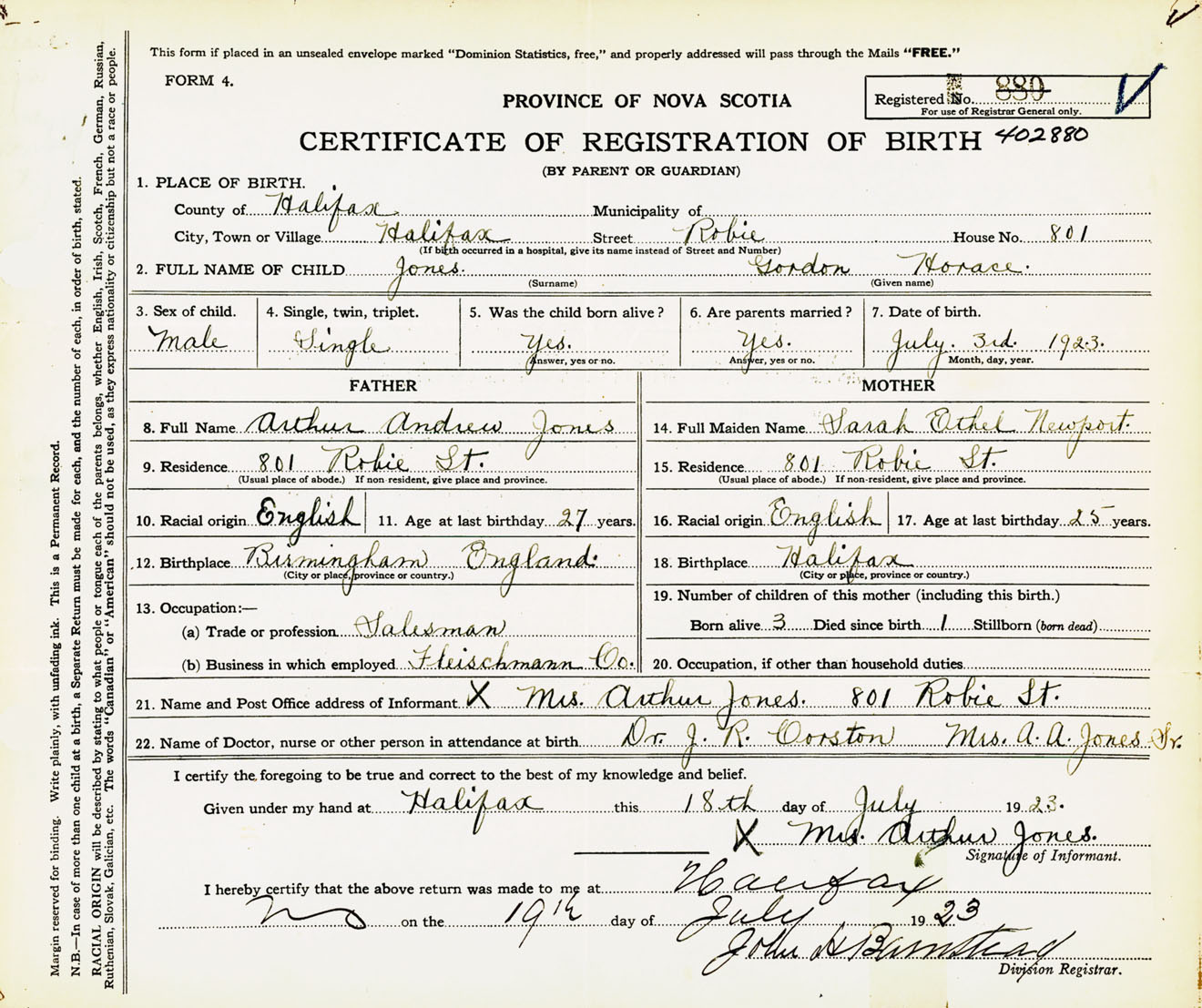 Male Birth Registration: Year: 1923 number: 40200880