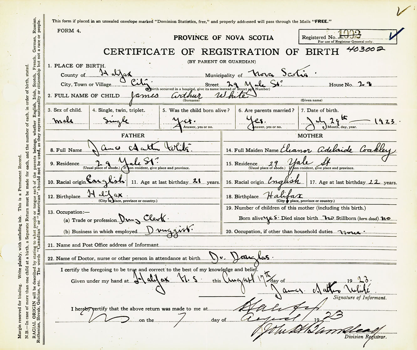 Male Birth Registration: Year: 1923 number: 40300002