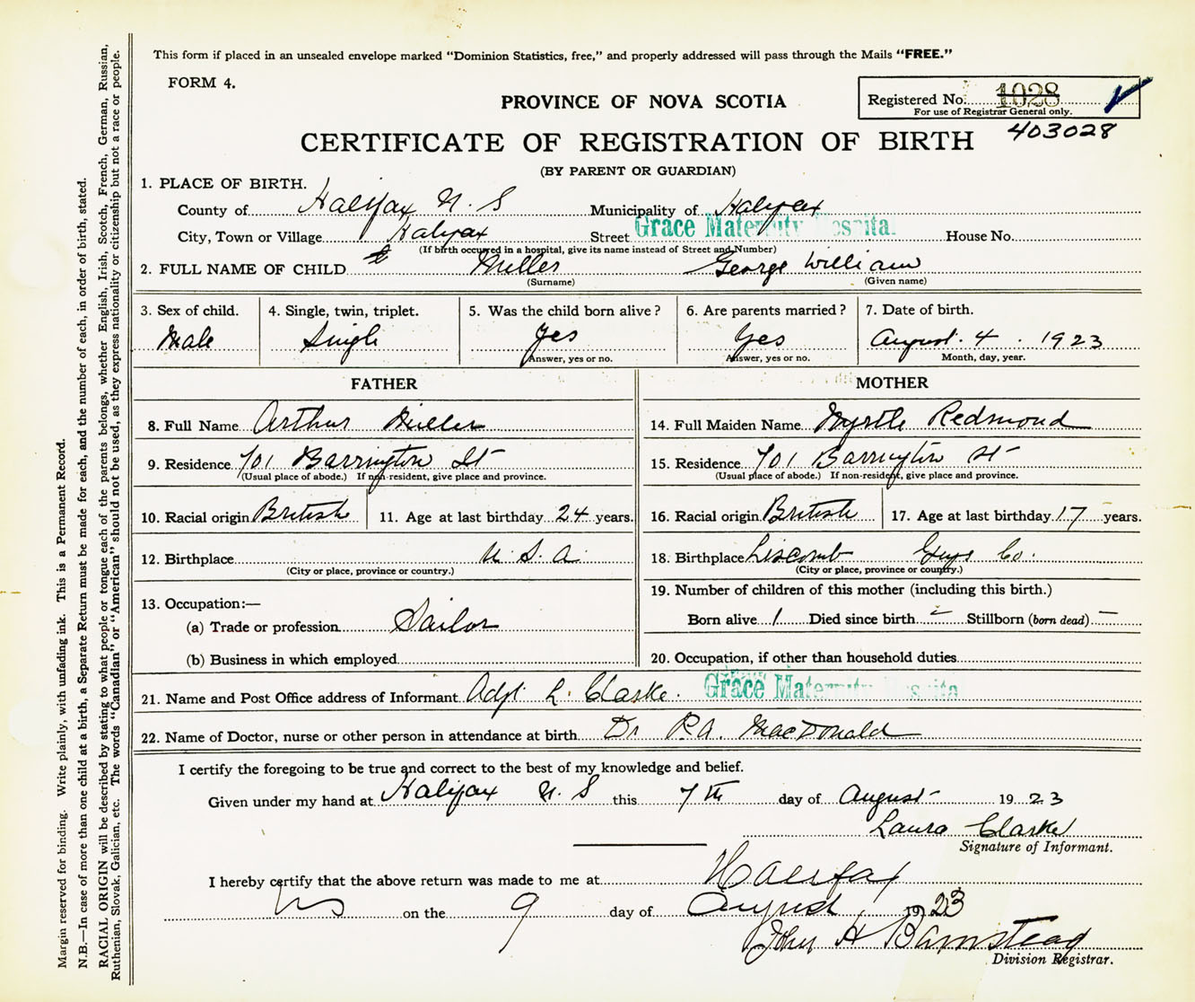 Male Birth Registration: Year: 1923 number: 40300028