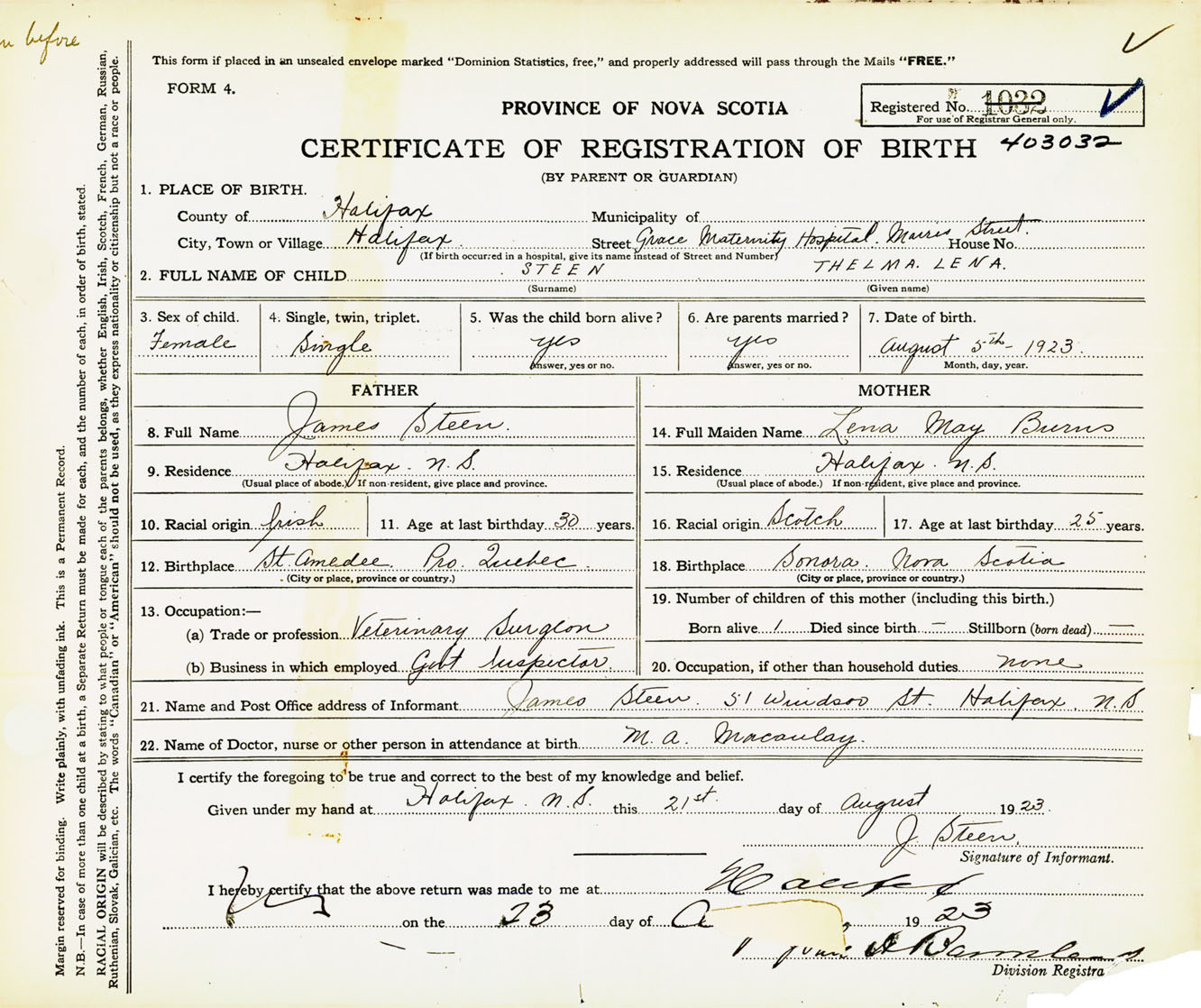 Nova Scotia Archives — https://archives.novascotia.ca/vital-statistics/birth/?ID=435073