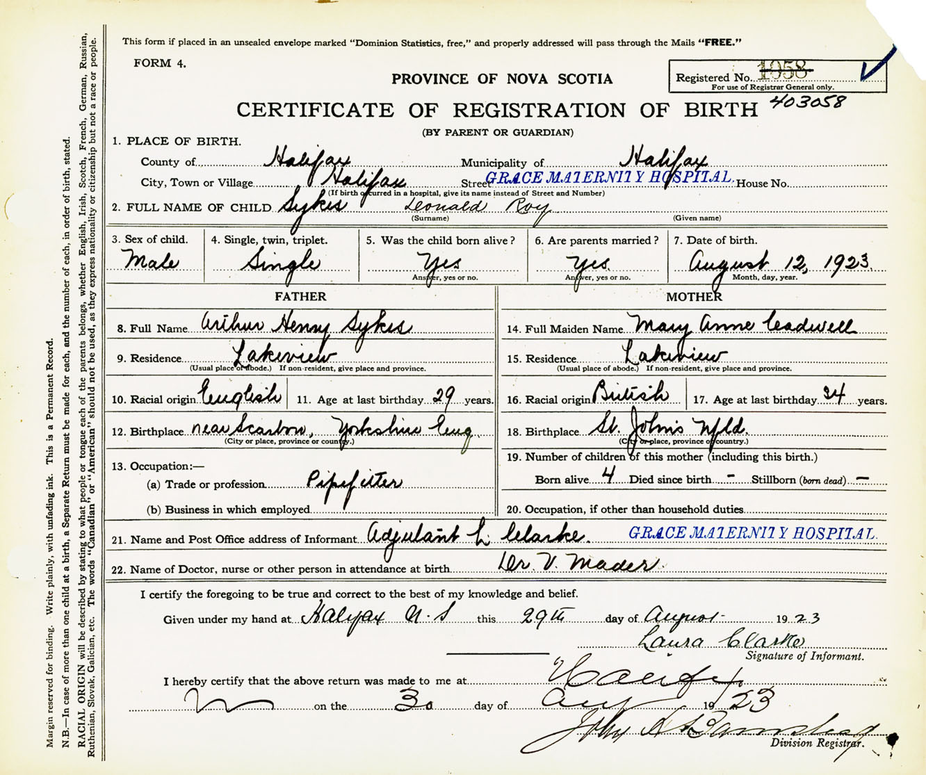 Nova Scotia Archives — https://archives.novascotia.ca/vital-statistics/birth/?ID=435099