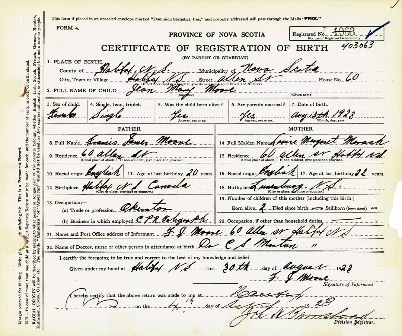 Nova Scotia Archives — https://archives.novascotia.ca/vital-statistics/birth/?ID=435104