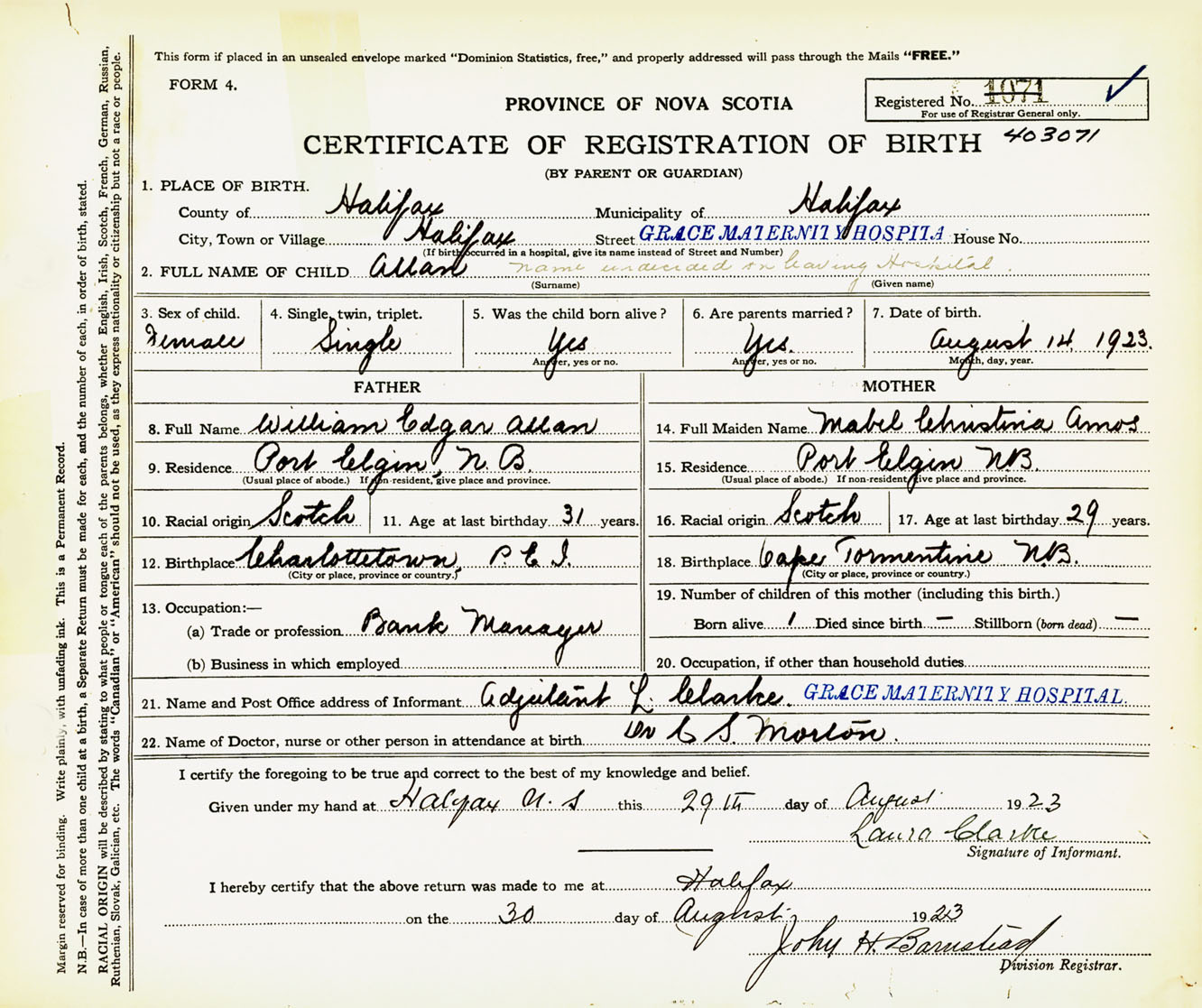 Nova Scotia Archives — https://archives.novascotia.ca/vital-statistics/birth/?ID=435112
