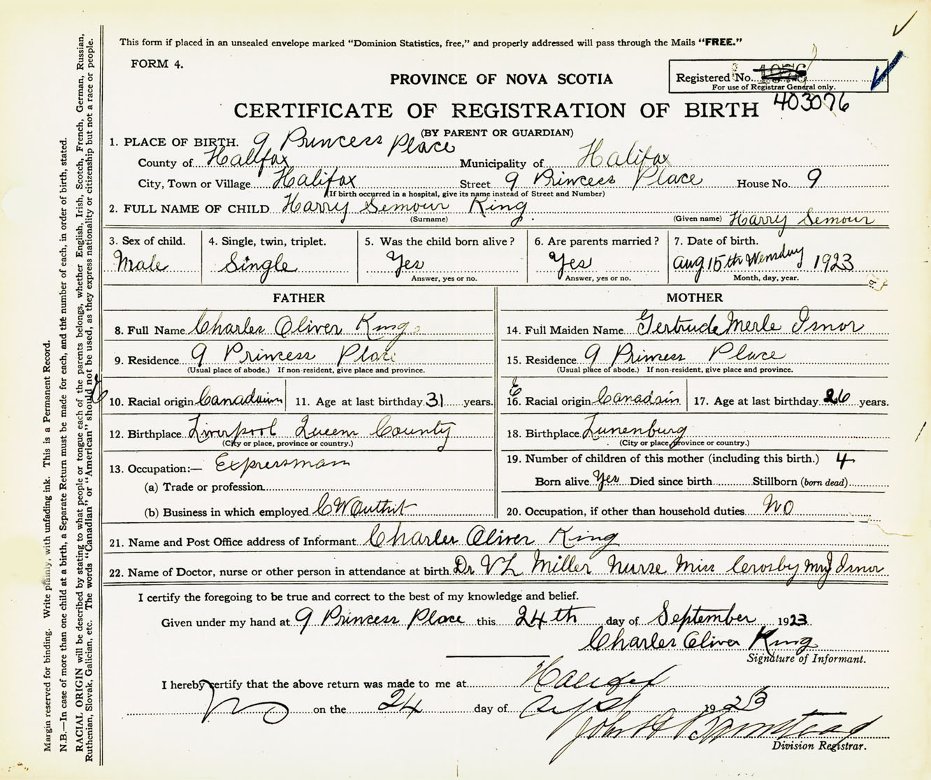 Male Birth Registration: Year: 1923 number: 40300076