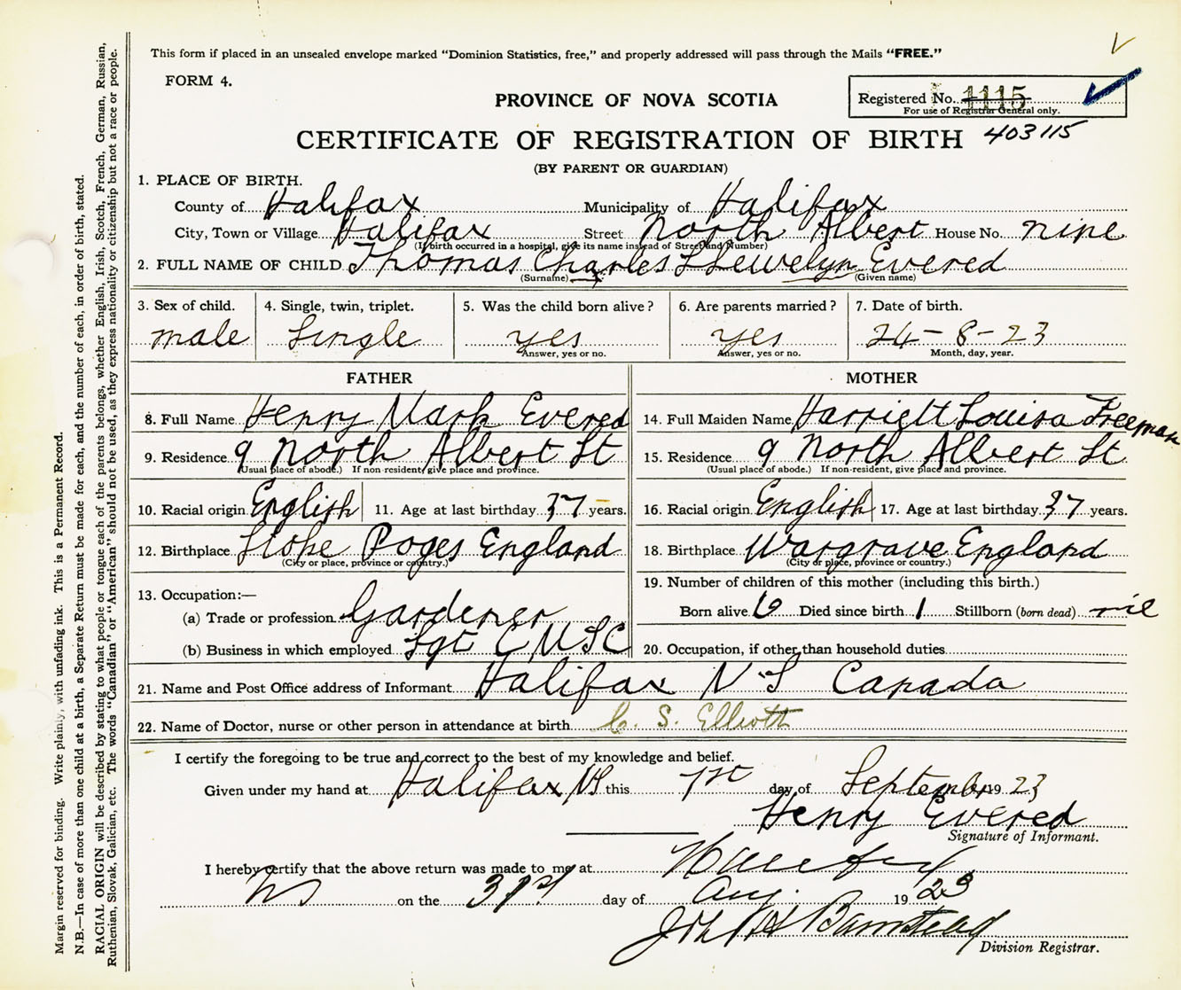 Male Birth Registration: Year: 1923 number: 40300115