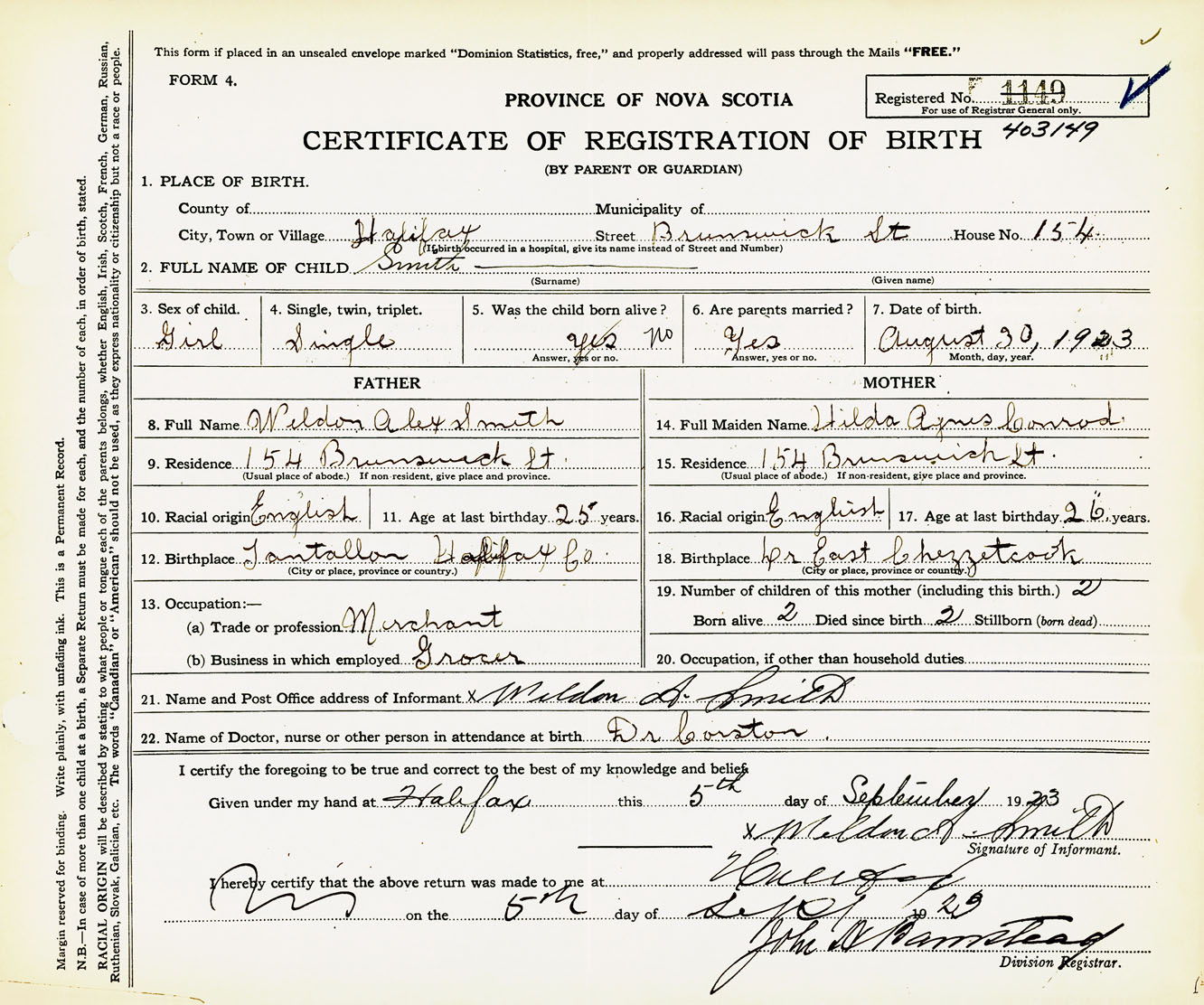 Nova Scotia Archives — https://archives.novascotia.ca/vital-statistics/birth/?ID=435190
