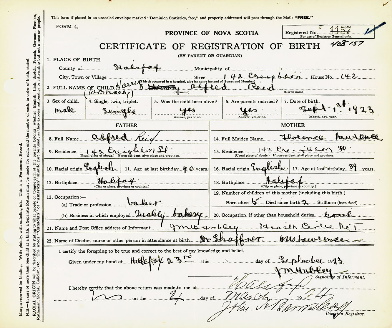 Male Birth Registration: Year: 1923 number: 40300157