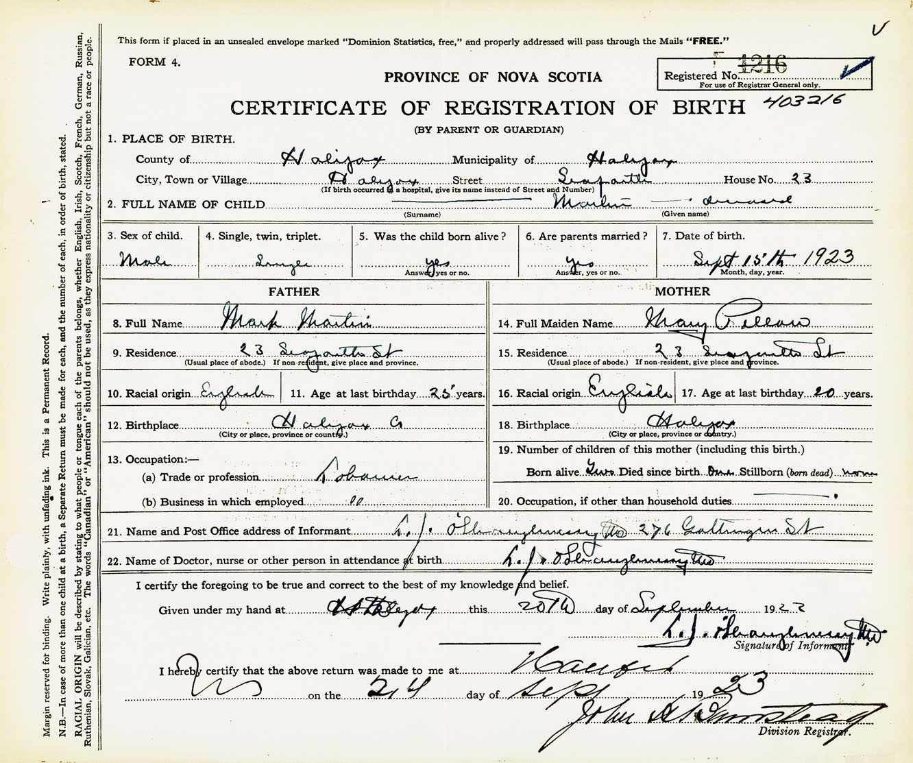 Nova Scotia Archives — https://archives.novascotia.ca/vital-statistics/birth/?ID=435257