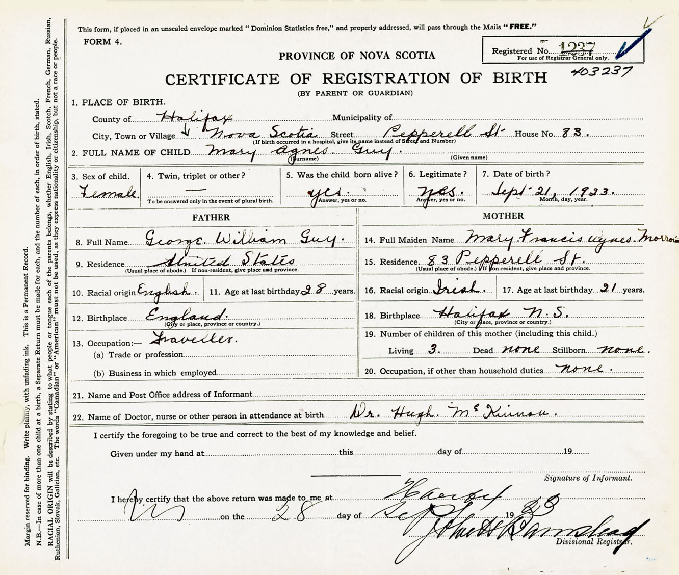 Female Birth Registration: Year: 1923 number: 40300237