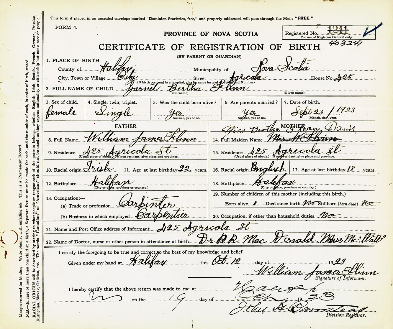 Nova Scotia Archives — https://archives.novascotia.ca/vital-statistics/birth/?ID=435282