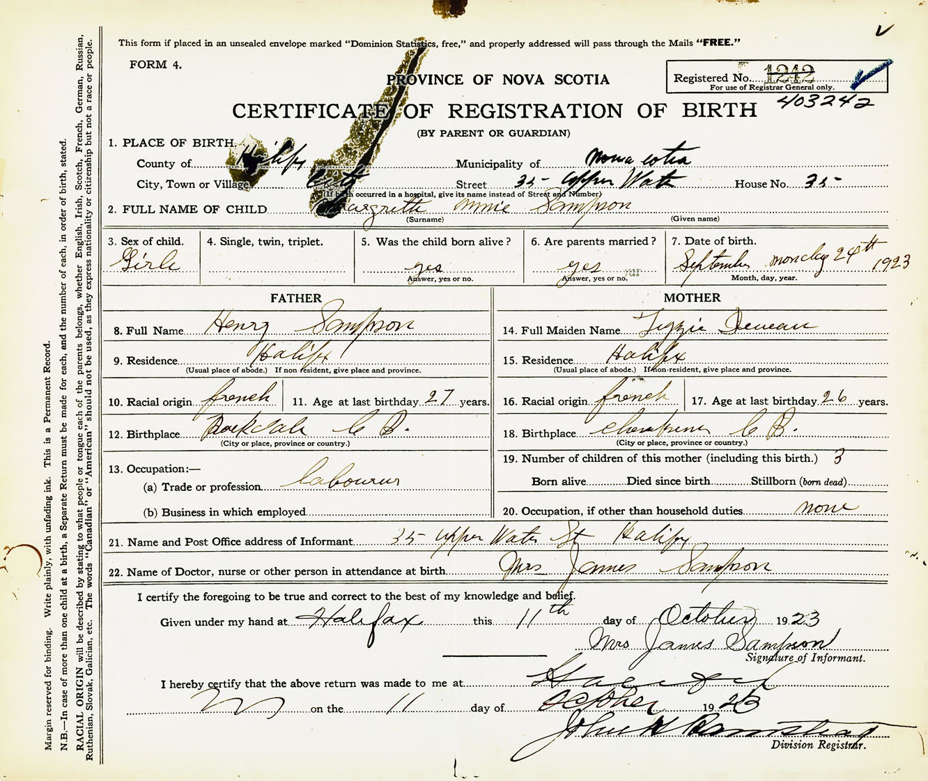 Nova Scotia Archives — https://archives.novascotia.ca/vital-statistics/birth/?ID=435283