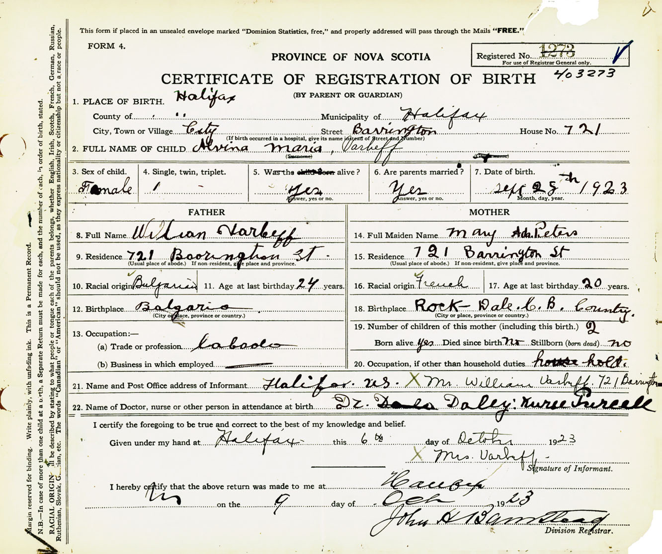 Female Birth Registration: Year: 1923 number: 40300273