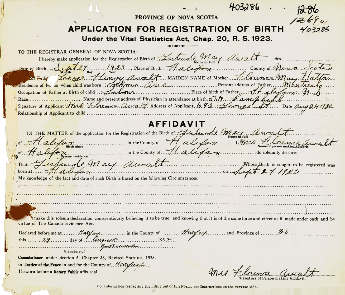 Birth Registration: Year: 1923 number: 40300286