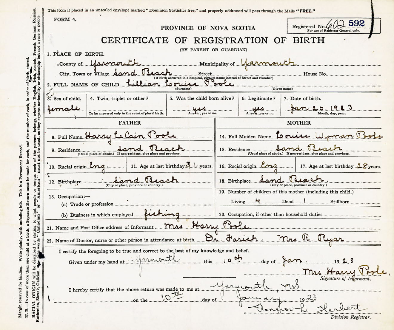 Female Birth Registration: Year: 1923 number: 60200592