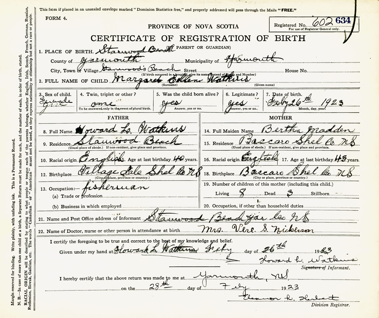 Female Birth Registration: Year: 1923 number: 60200634